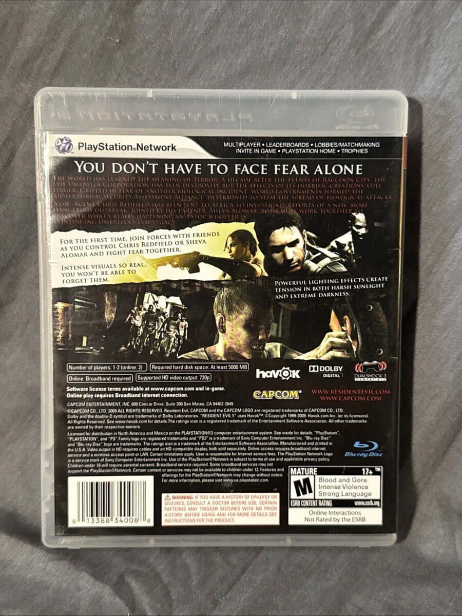 Resident Evil 5 for the Sony PlayStation 3, released in 2009, offers intense and explosive gameplay in the style of the award-winning Resident Evil 4. Set in the Resident Evil universe, players take on the roles of Chris Redfield and stalwart hero of the original Resident Evil and Code Veronica. The game features high-def graphics and sound, making it a visually and aurally impressive addition to the Resident Evil series. As a M-rated shooter, Resident Evil 5 delivers a thrilling and immersive gaming experience for fans of the franchise.