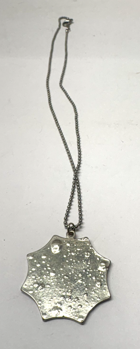 New. Approx 16" around. The charm is approx 1 1/4" tall. All Alloy. Comes exactly as seen in pictures.