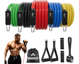 Comprehensive home gym solution: This resistance band set includes 5 exercise bands, 1 door anchor, 2 cushioned handles, a carrying case, and a user manual, allowing you to perform a wide range of resistance training exercises at home.