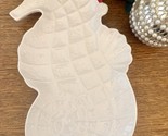The retired Pier 1 Beach Christmas Seahorse Platter is a festive and charming holiday-inspired dish that is perfect for serving up snacks and treats during the holiday season. Made of ceramic in a classic white color, this platter features a playful seahorse design and comes adorned with a colorful red Santa hat, adding a touch of whimsy to your festive table setting. Whether used for a holiday gathering or simply as a decorative piece, this platter is sure to bring a touch of ocean-inspired cheer to your Christmas celebrations.