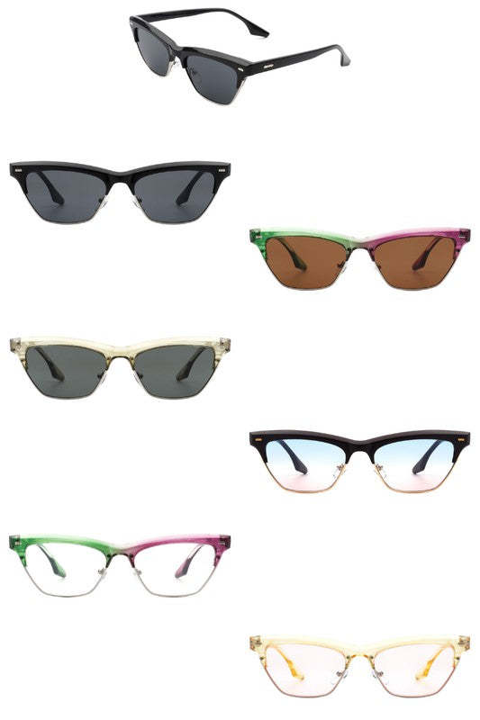 - Retro Half Frame Square Fashion Cat Eye Sunglasses