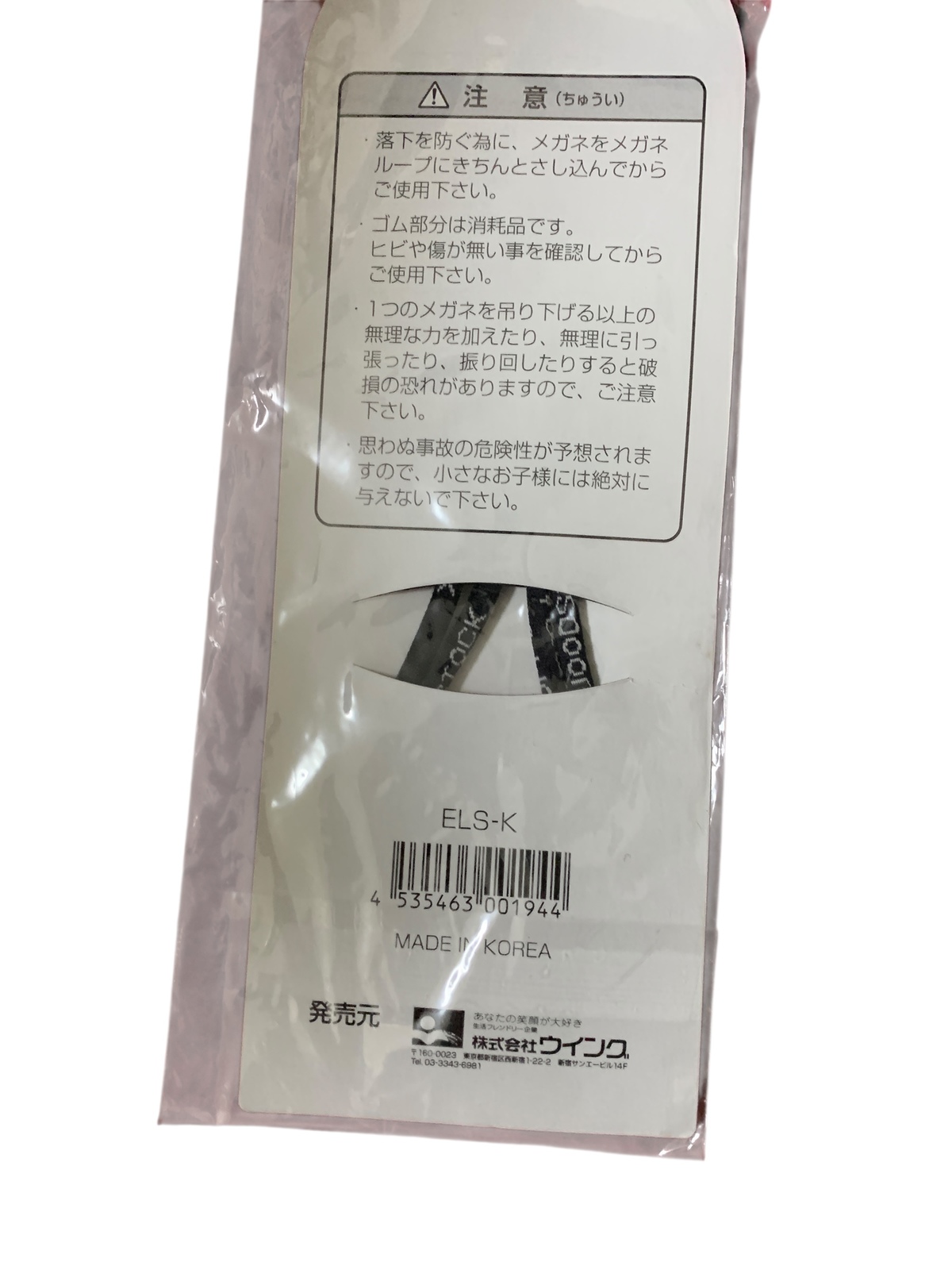 This is an older, unused eyeglasses strap. The packaging is a little worn, but it's still in good condition.