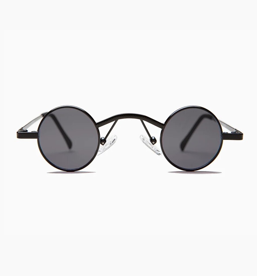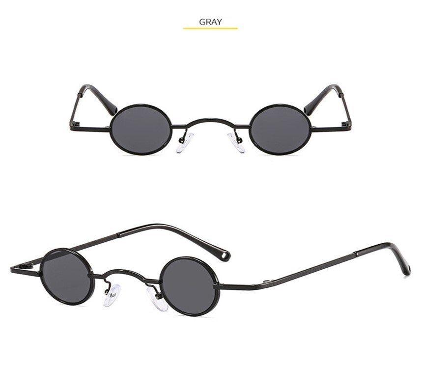 - Retro Steampunk GOTHIC SUNGLASSES Mini Small Round Metal Frame -BLACK/GRAY-UV400