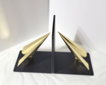 - Retro Style Metal Paper Airplane Bookends Gold Tone on Black Aviation