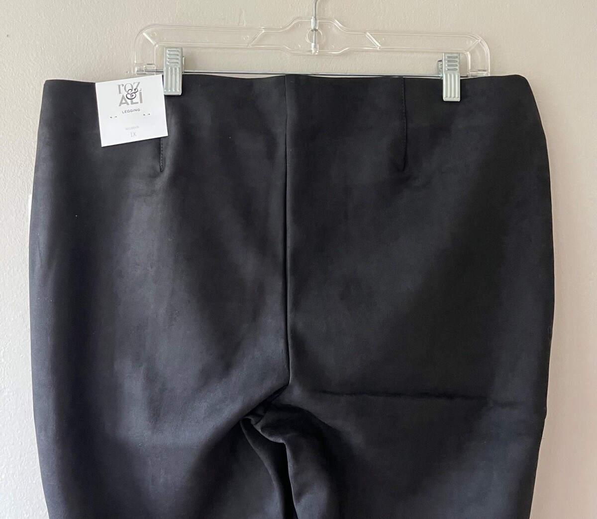 Retrology Sz 1X Black Velvet Pants Pull On Stretch Tapered Leg Dress Pants