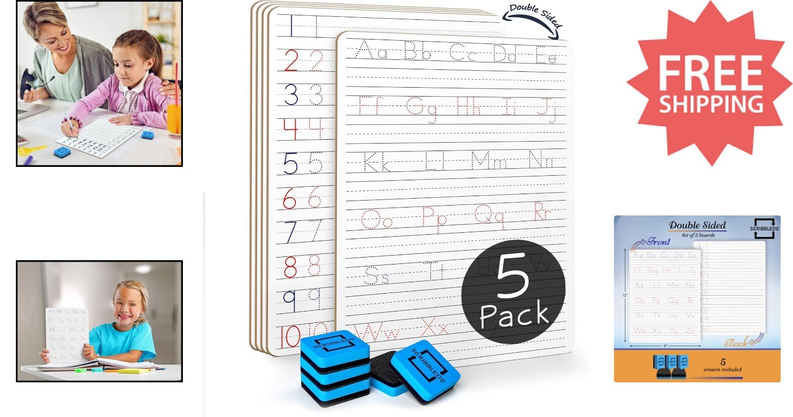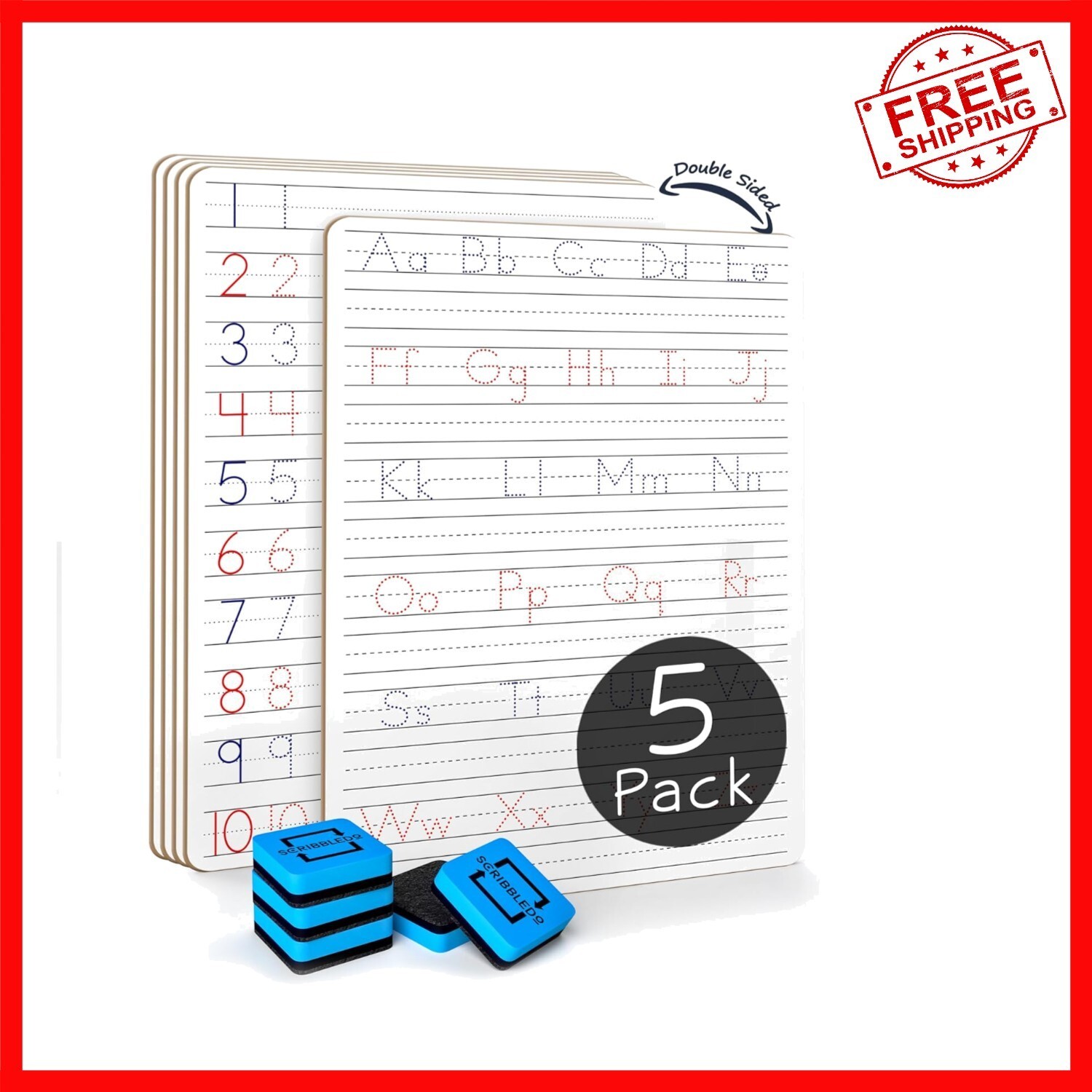 - Reusable 9x12 Kids Handwriting Practice Boards - 5-Cards Set with Erasers