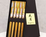 Reusable Bamboo Colorful Cherry Blossoms Set of 5 Ridged Chopsticks Pairs In Box