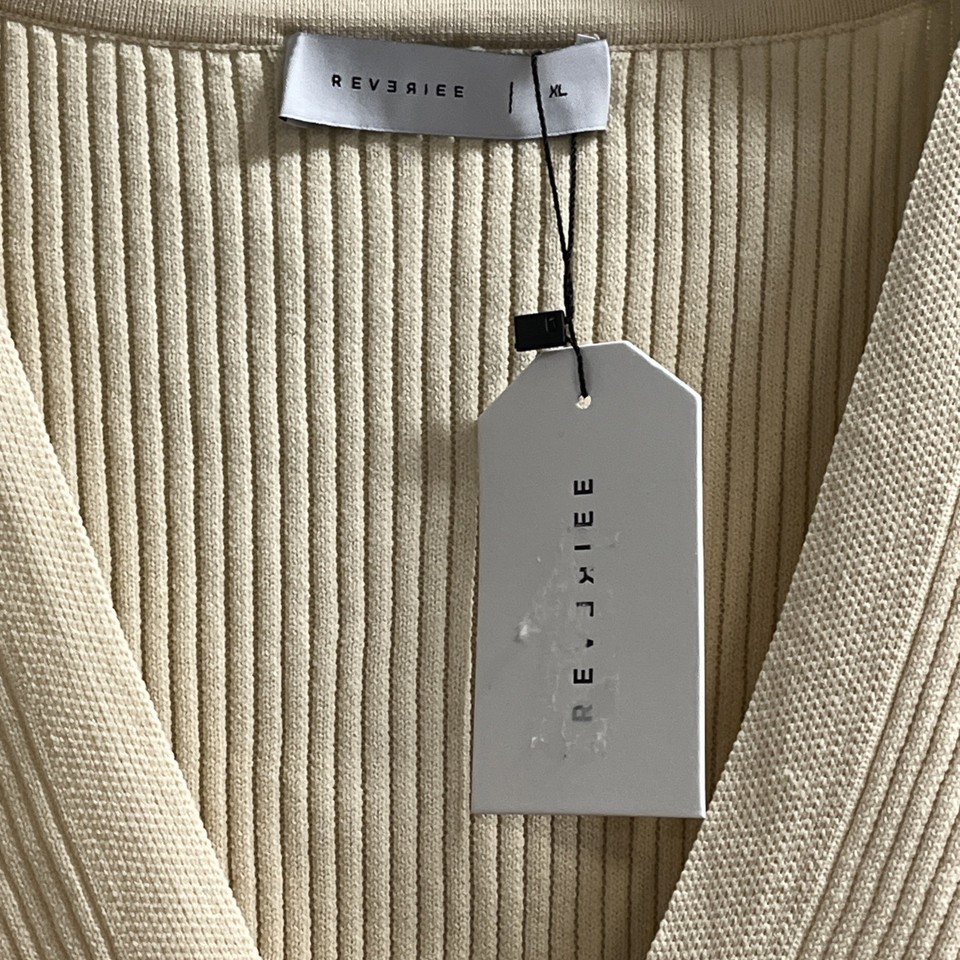 - Reveriee Sweater Women XL Tan Crossover Ribbed Knit Pullover Asymmetrical Modern