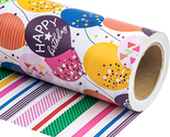 REVERSIBLE: Colorful balloons and confetti printed on one side, colorful stripes printed on the reverse. Two different designs make unique and varied gift presentations easy PERFECT SIZE: Each roll measures 17 inches wide by 33 feet long USE ALL OCCASION: Perfect for birthday, holiday, Christmas, wedding, Mother day, baby shower gifts wrap. It is also great for craft project