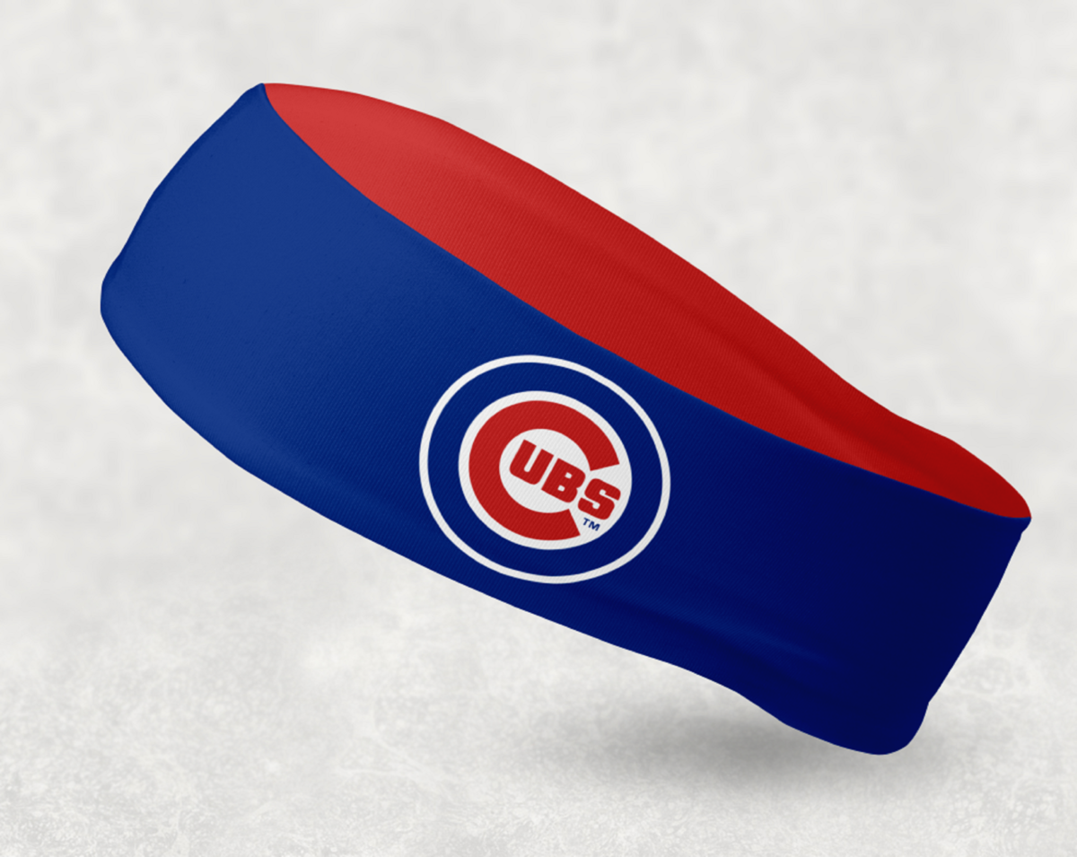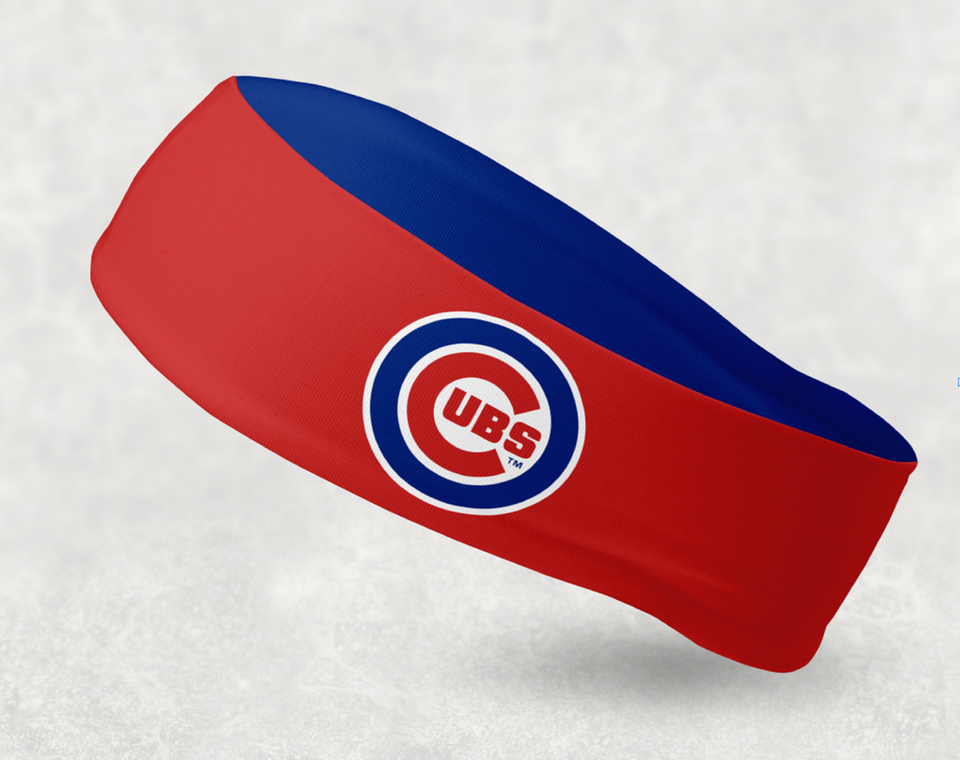 Reversible Headband - One side is blue and the reverse side is red. Logo is printed on both sides.