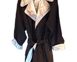 Reversible Women's Raincoat Black Shiny Silver Buttons Collar Belted Pockets M