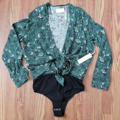 - Revolve x Capulet Bodysuit Top Womens XS Green Floral Daria Long Sleeve Blouse