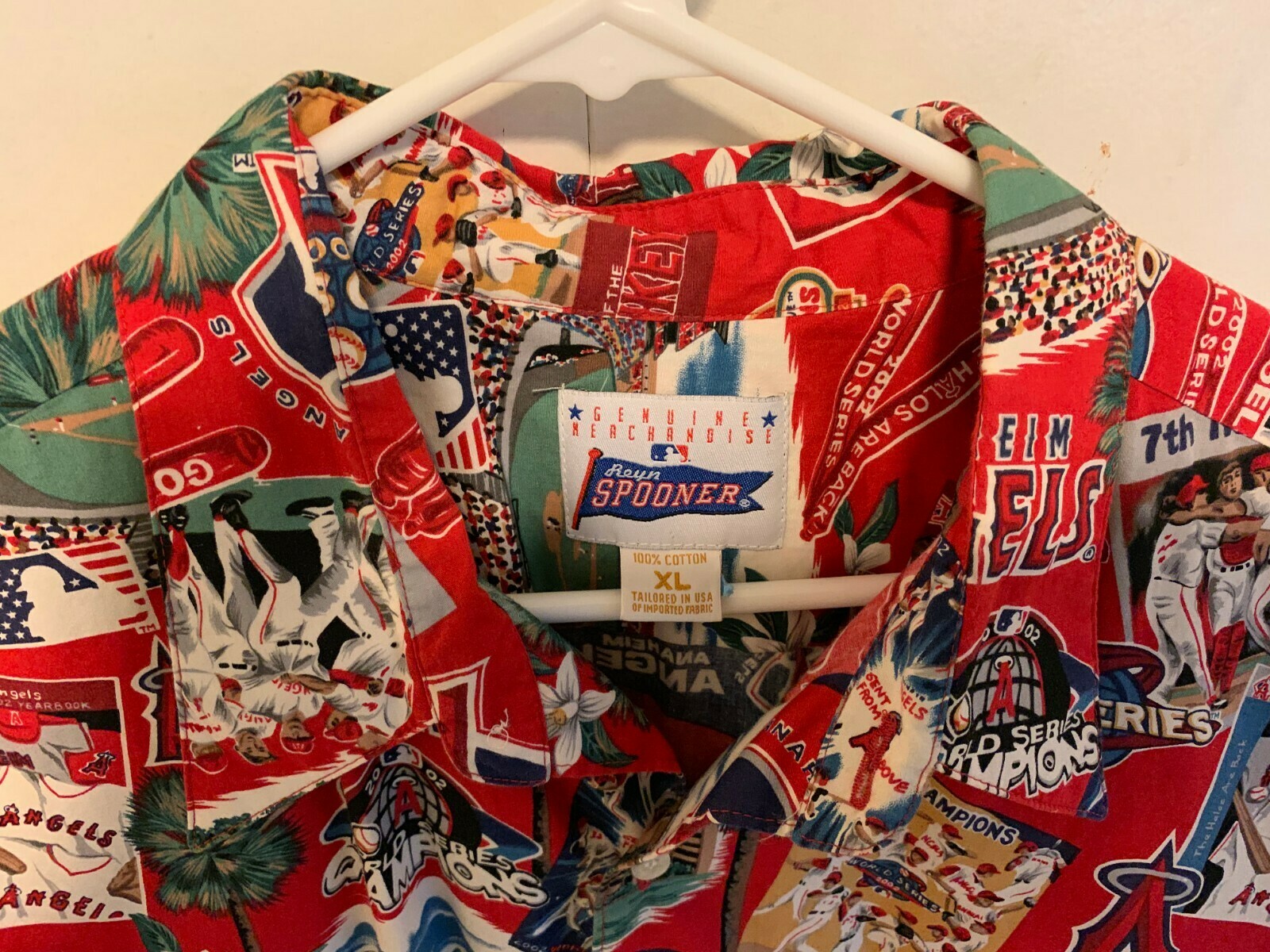 - Reyn Spooner Rot Anaheim Engel Baseball Hawaiihemd Größe XL 2002 Welt Champs