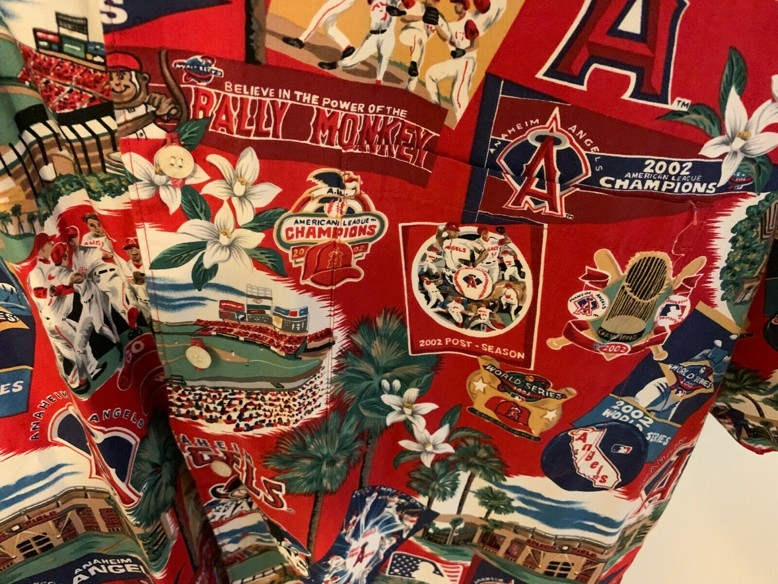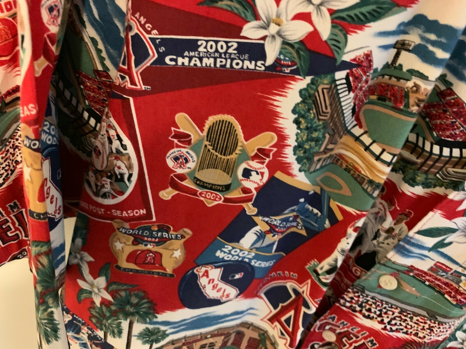 Reyn Spooner Rot Anaheim Engel Baseball Hawaiihemd Große XL 2002 Welt Champs