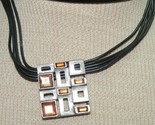 - Rhinestone pendant necklace 17-20" on black cord unmarked possibly pewter Israel