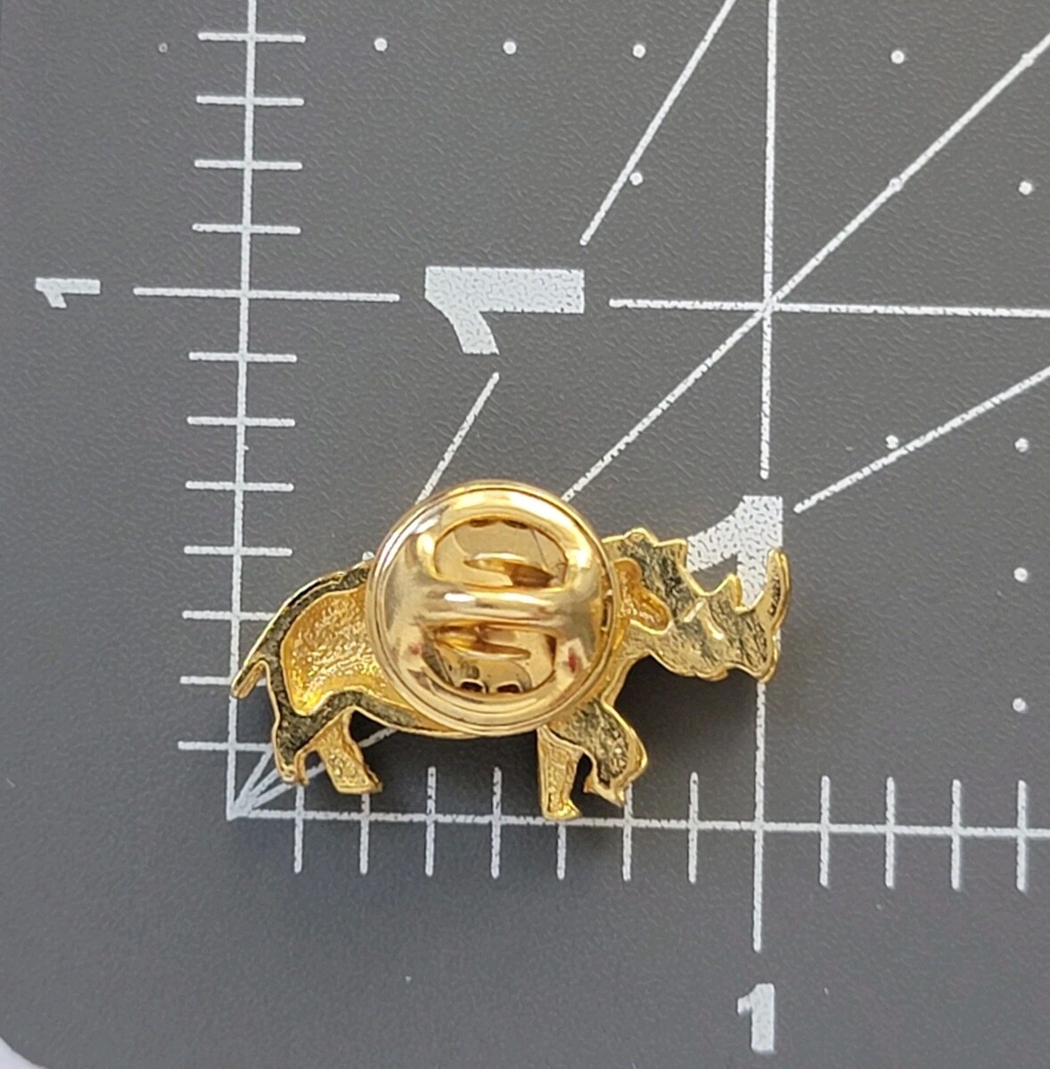 - Rhinoceros Gold Tone Figural Lapel Pin Rhino Walking Animal Wildlife Jewelry
