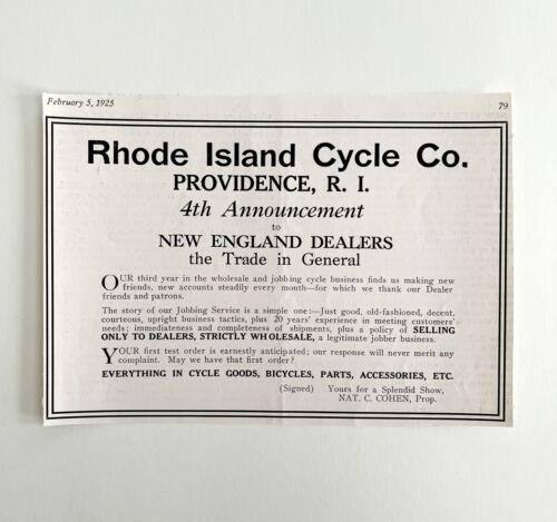 - Rhode Island Cycle Co 1925 Advertisement Bicycle Providence New England DWCC13
