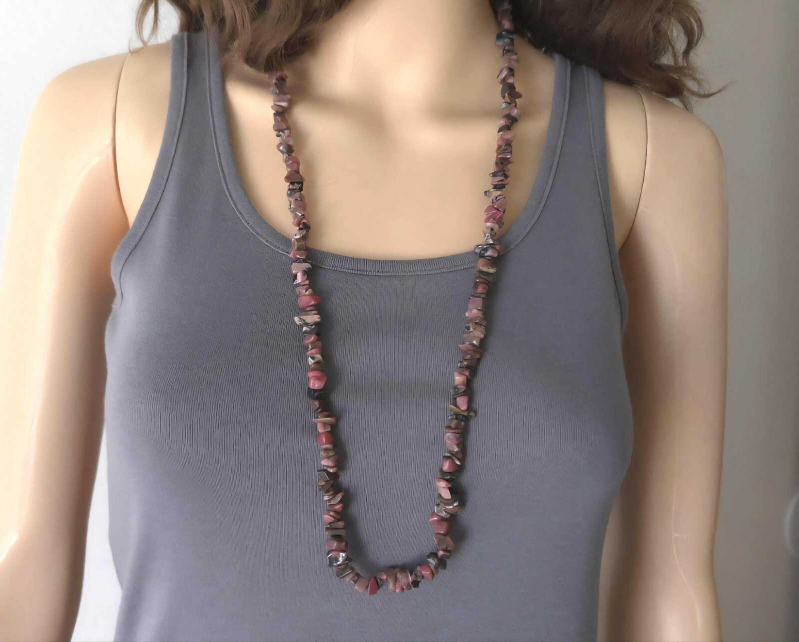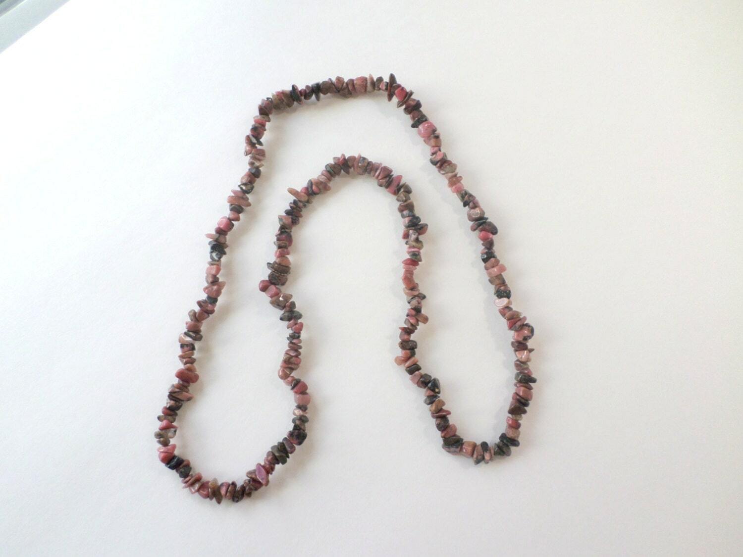 - Rhodonite Gemstone Layering Chip Necklace