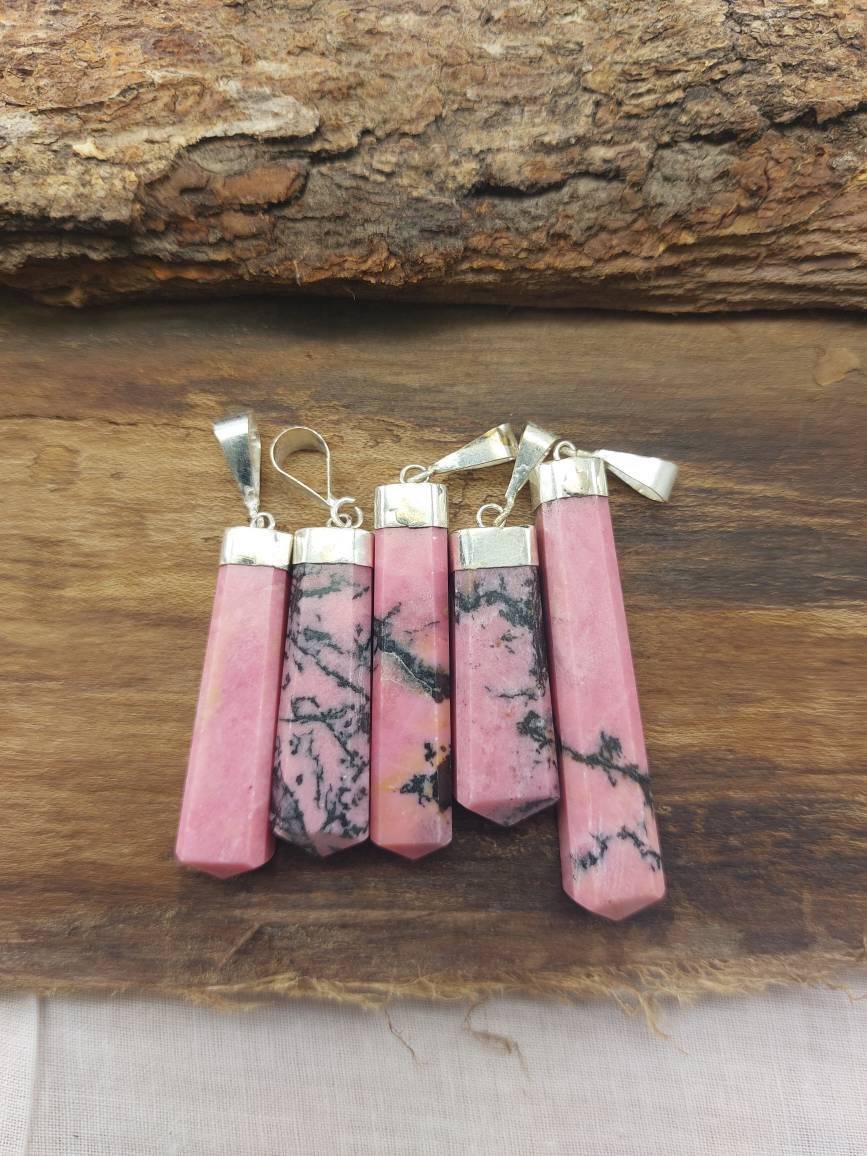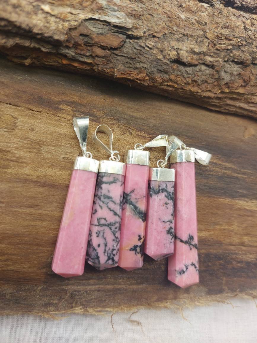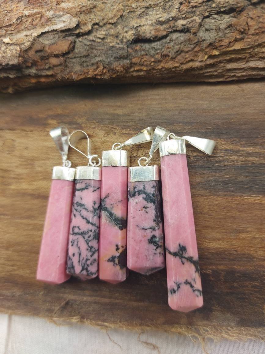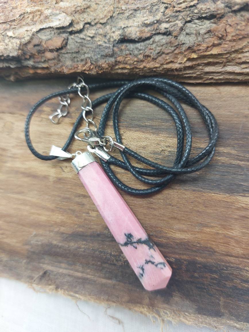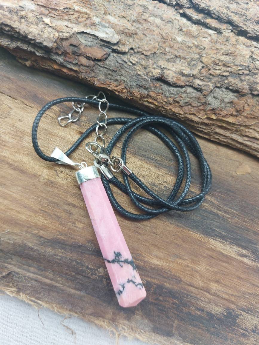 Rhodonite Handmade Pendant with leather Chain