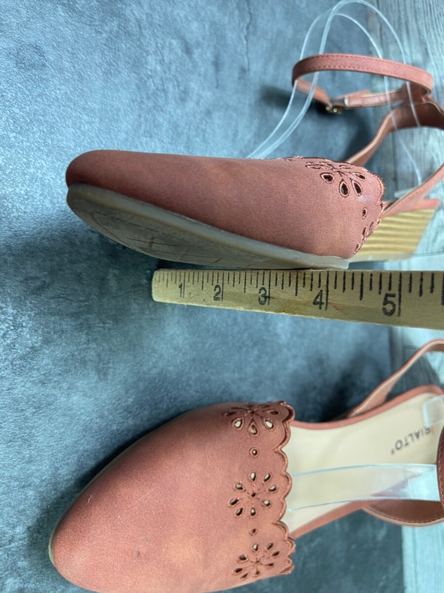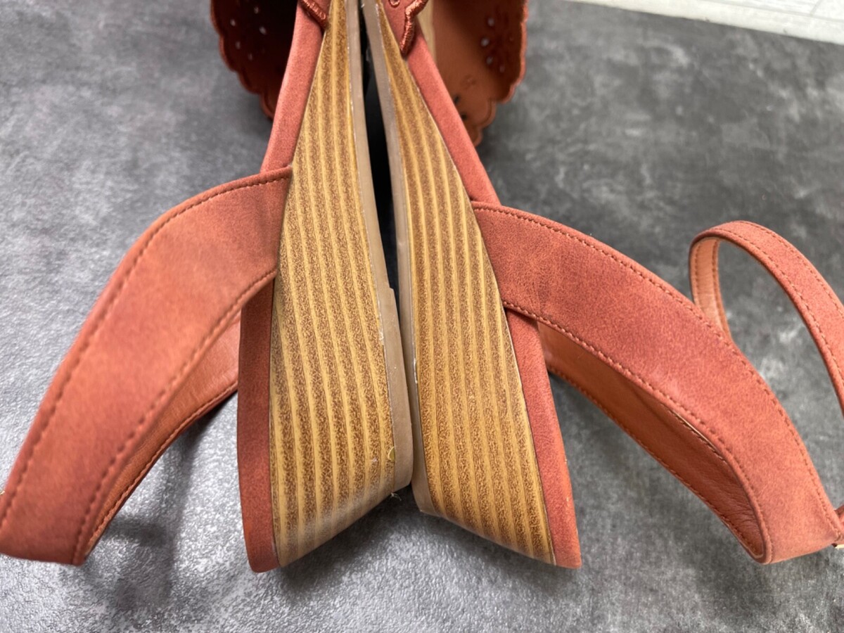 - Rialto Sandals Women 10 Marlie Shoes Brown Nubuck Comfort Ankle Strap Lace Wedge