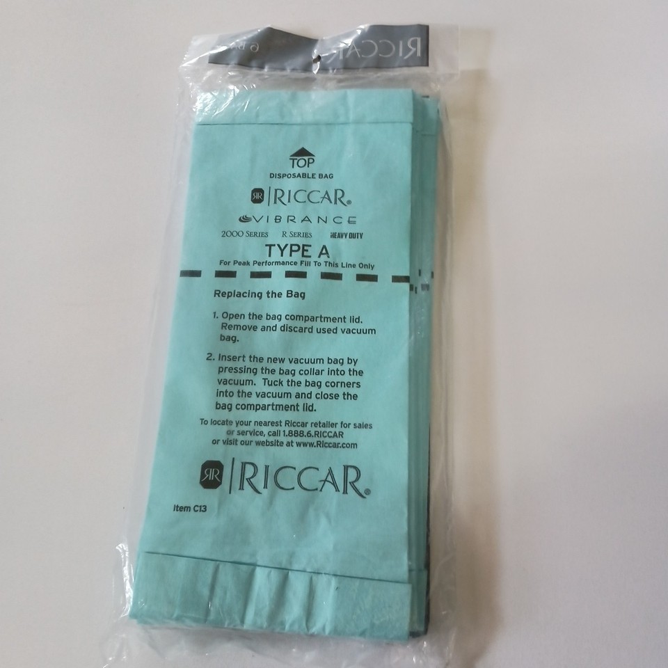 - Riccar Type A Vacuum Bags C13-6 Fits Vibrance, Heavy Duty R & 2000 Series 6pk
