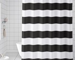 - Rich Black & White Rugby Stripes Fabric Shower Curtain, Modern, 72" x 72" - NEW