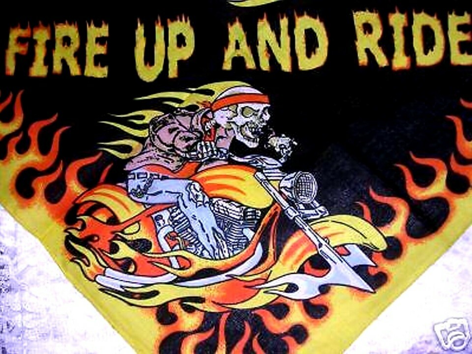 - RIDER FIRE UP & RIDE DETAILED SKELETON BIKER DUDE MOTORCYCLE BANDANA HANKERCHIEF