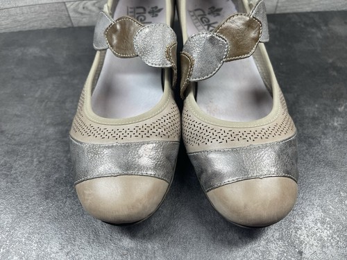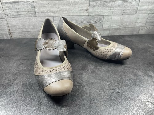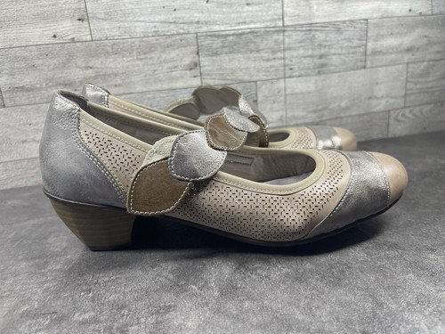 - Rieker Kitten Heels Women 9M Mariah Shoes Brown Silver Leather Mary Jane Comfort