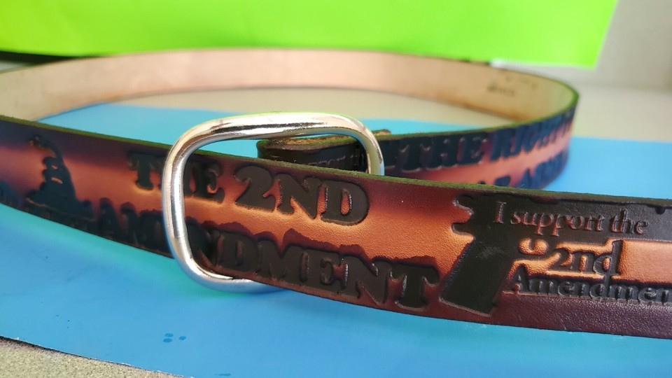RIGHT TO BEAR ARMS- 2nd AMENDMENT Genuine LEATHER BELT w/ Standard Buckle