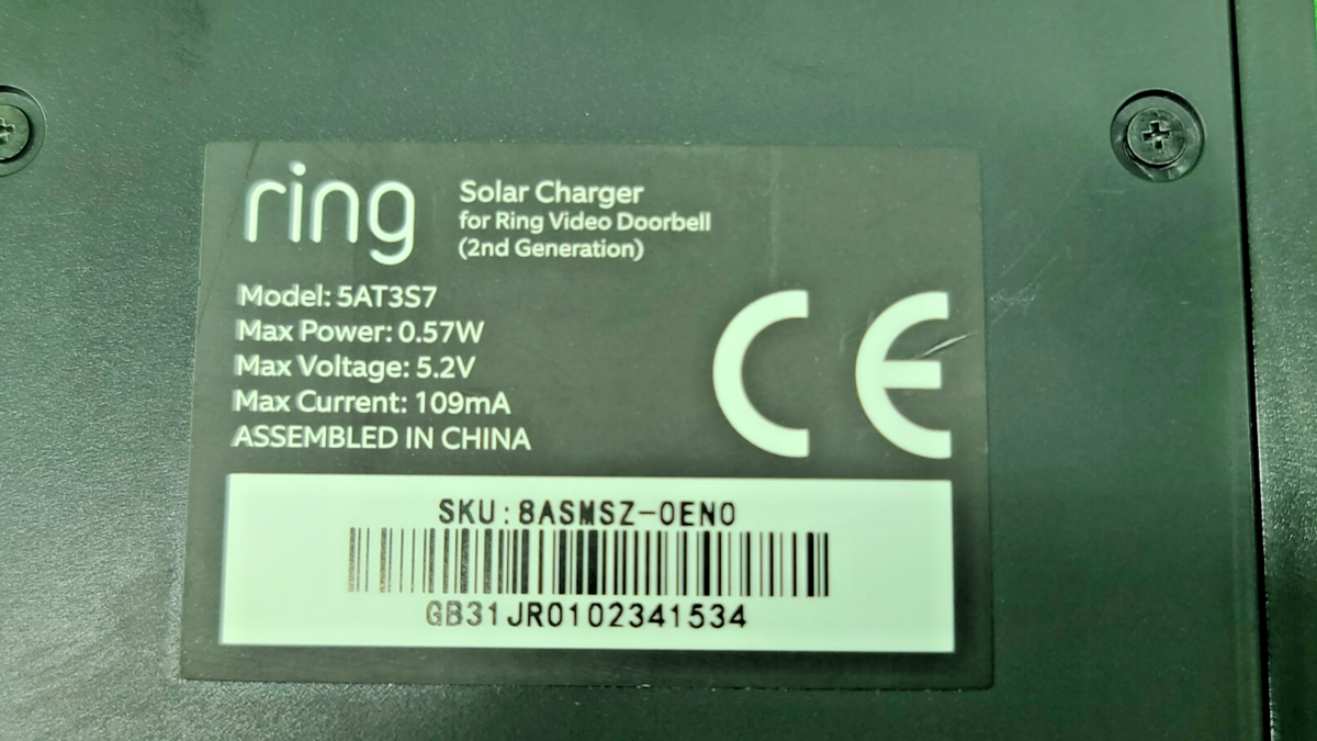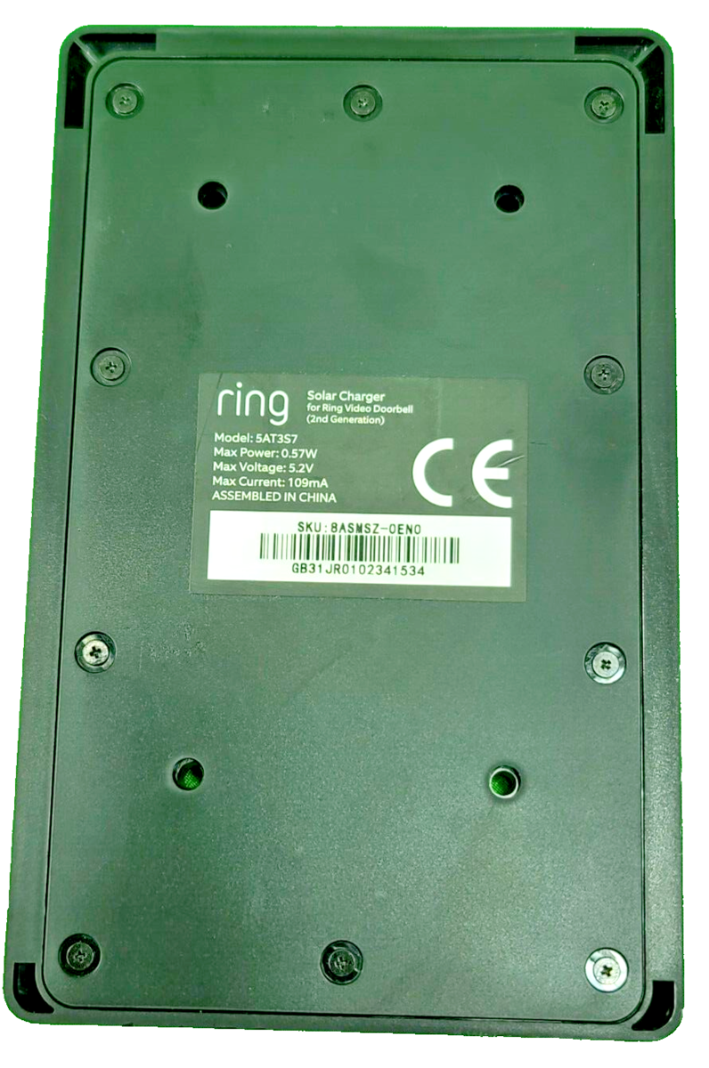 - Ring 5AT3S7 Black Solar Charger Ring Battery Video Doorbell Micro USB