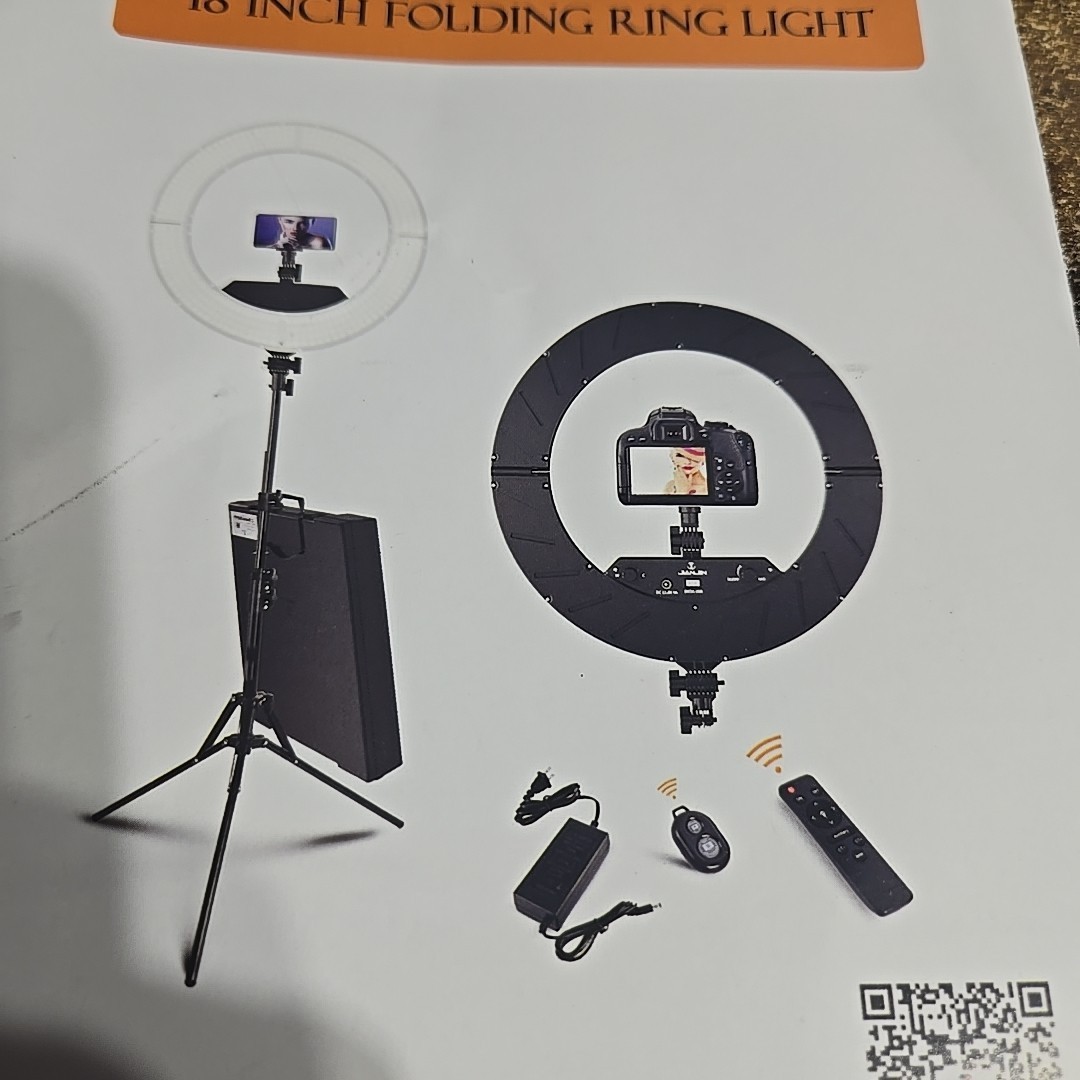- Ring Light Kit:18"/45cm Outer 55W6700k Dimmable LED Light, Tripod Stand, Remote