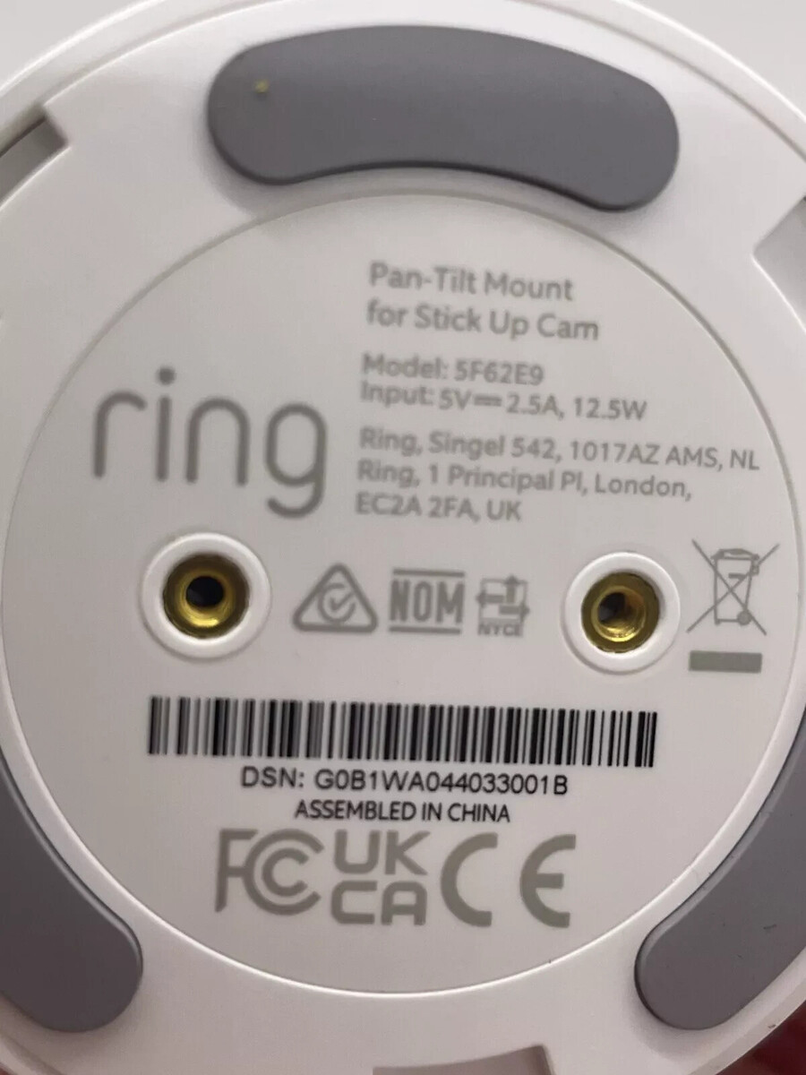 Ring Pan-Tilt Mount for Stick-Up Cam Battery WHITE 5F62E9 **NEW** No Box