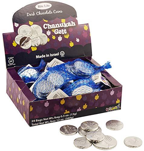 - Rite Lite Chanukah Dark Chocolate Gelt Chocolate Large Coins - 24 Bags In a Disp
