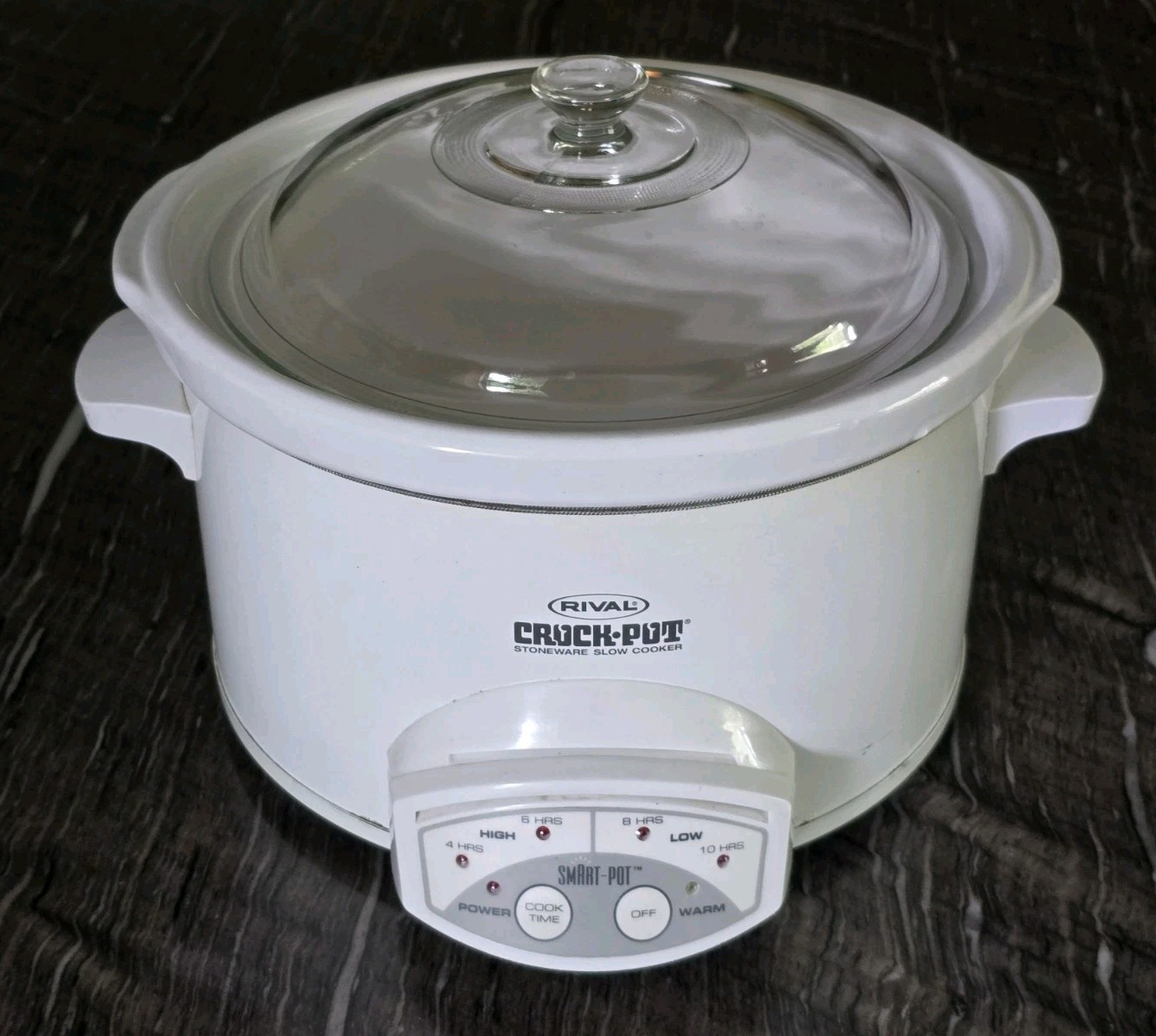 - Rival Crock Pot Stoneware Slow Cooker 5 qt Smart Pot White Model 3850 USA Made