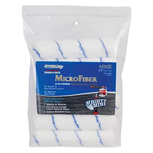 Product description: Arroworthy Microfiber Nap Jumbo Cage Roller Refill 6 Pack - 4 Inch 6.5 Inch Microfiber roller sleeves for both oil and water-based paints. 3/8" Nap (9.63cm) Smooth and semi-smooth surfaces Ideal for plaster, wood metal 9/16" Nap (14.29) Semi smooth and semi-rough surfaces Ideal for plaster, wood metal that is slightly uneven or with light texture