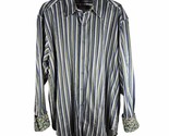 - Robert Graham Mens Long Sleeve Button Down Blue Green Stripe Beachchair Cuff 2XL