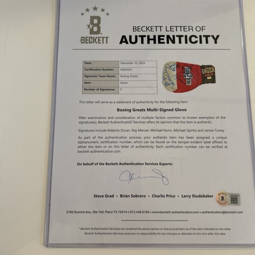 - ROBERTO DURAN, RAY MERCER, JAMES TONEY,AND MORE ! SIGNED GLOVE,BAS AUTHENTICATED