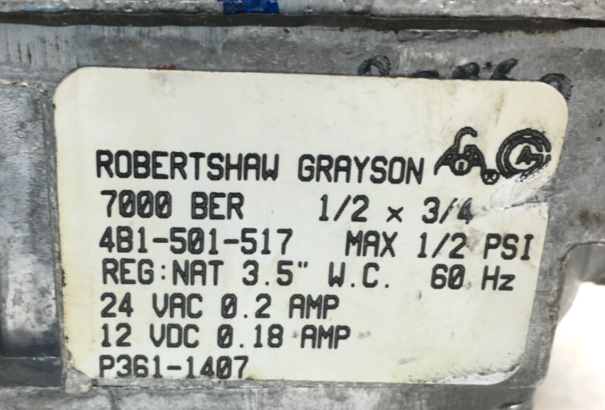 This is Robertshaw 7000 BER 4B1-501-517 P361-1407 Gas Valve in 1/2 out 3/4, clean, bench tested and it's