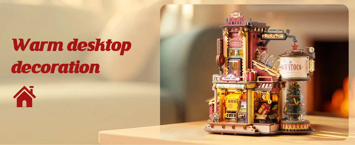 Step into the Dream Gift Factory Wooden Music Box?a whimsical mini workshop where imagination comes to life. Watch in wonder as toys glide along a conveyor belt to the second floor for gift wrapping, then descend to the first for ribbons and bows. After passing a ?happiness check,? each gift is lovingly packed?ready to bring joy to its lucky recipient.