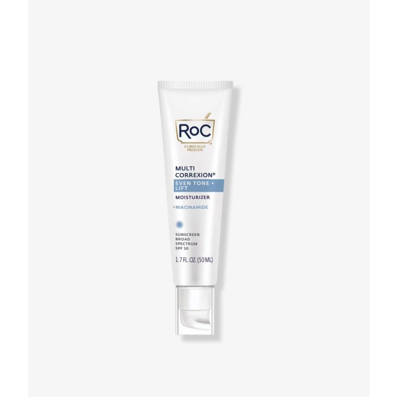 RoC Multi Correxion Even Tone + Lift 5 in 1 Daily Moisturizer with SPF 30 Hexinol Technology improves the look of discoloration, sagging, dull tone, and wrinkles while protecting skin from future sun damage.