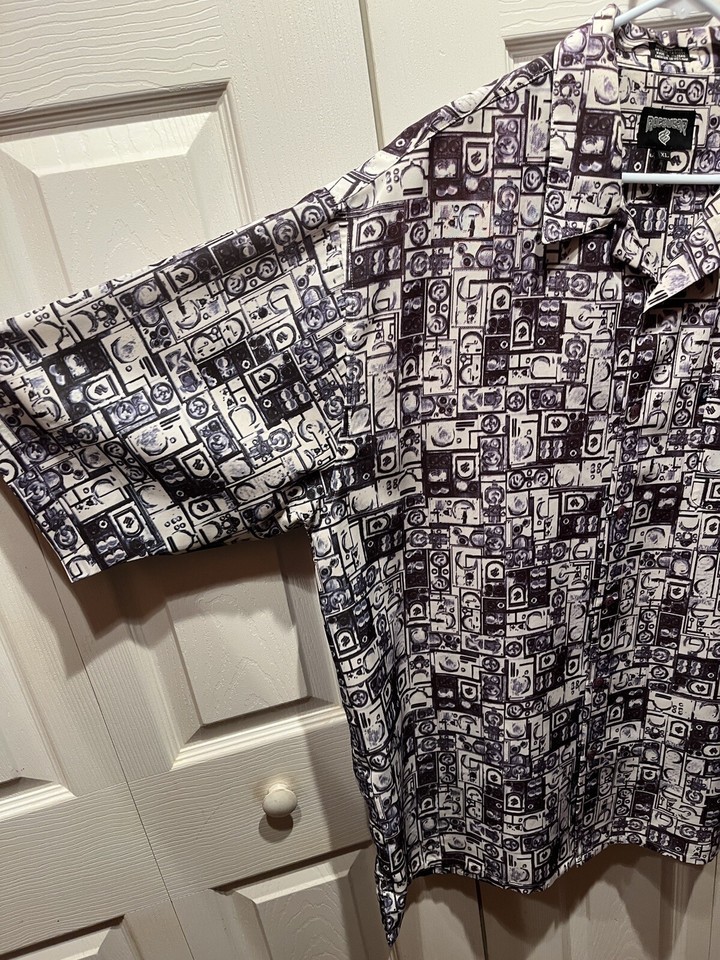 - Rocawear Shirt Mens XL Purple Pattern Short Sleeve Button Extra Large Polyester