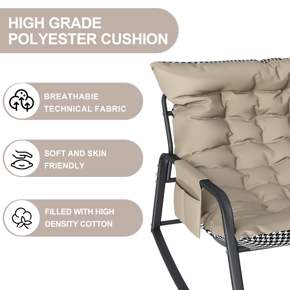 All-Weather Indoor/Outdoor Versatility: Durable, skin-friendly and anti-abrasion fabric, combined with breathable mesh structure. Remove the cushion for summer cooling; add it for winter coziness. Ideal for patios, gardens, living rooms, or poolside retreats.