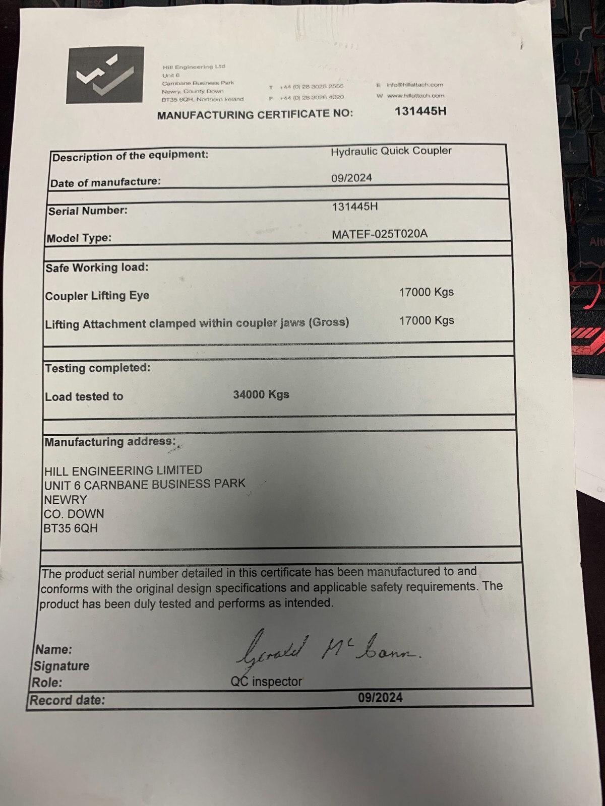 ROCKLAND QUICK COUPLER MATEF-025T020A 17000LB CAPACITY BRAND NEW
