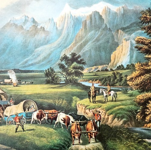 - Rocky Mountains Emigrants Currier & Ives 1950s Lithograph Colorado DWHH15