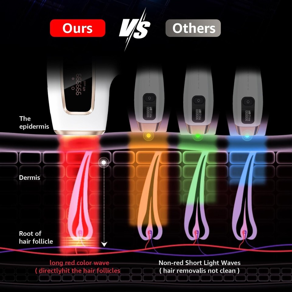 Upgraded Painless CareThe light hair removal devices for women with painless care features, it can cool the skin while emitting pulsed light. Skin temperature as low as 6,soothes the burning sensation and won't cause skin redness.Making the hair removal treatments painless and Skin-Friendly.