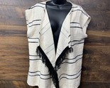 Roffe Womens Kimono Wrap Tweed Cream Black Fringed Striped One Size Sleeveless. Condition is Pre-owned. Shipped with USPS Ground Advantage.
