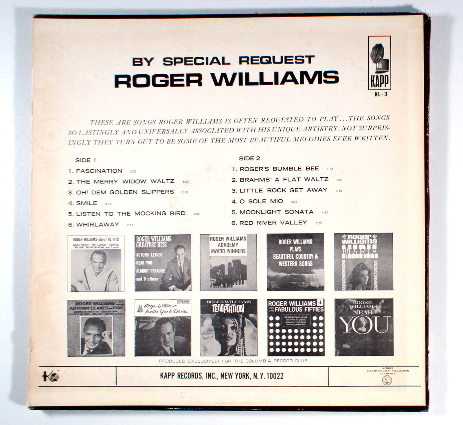 By Special Request, by Roger Williams, is a record of songs Roger Williams is often requested to play...the songs so lastingly and universally associated with his unique artistry. Not surprisingly they turn out to be some of the most beautiful melodies every written. (liner notes)