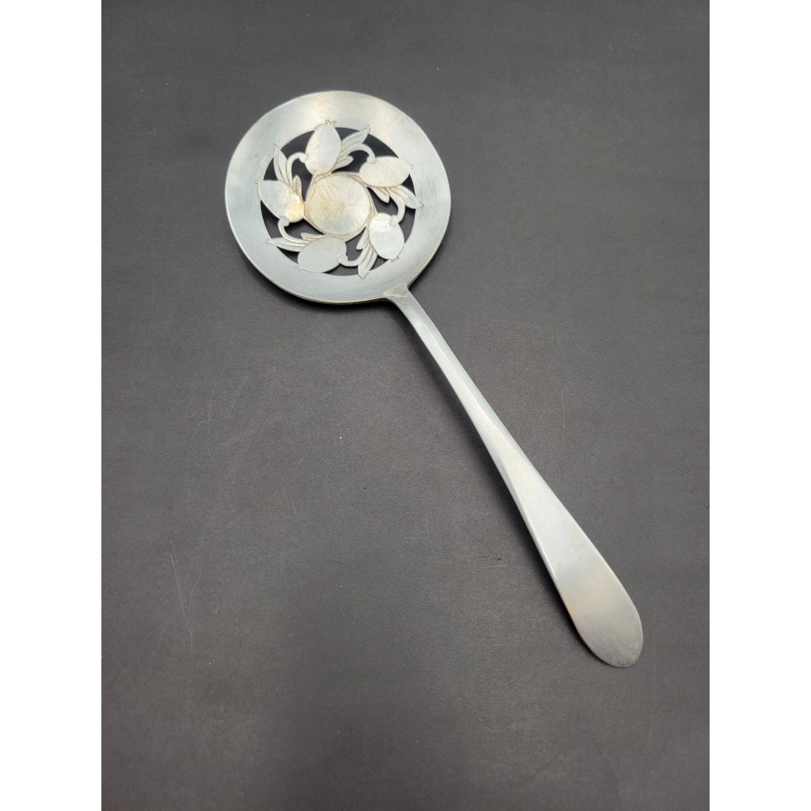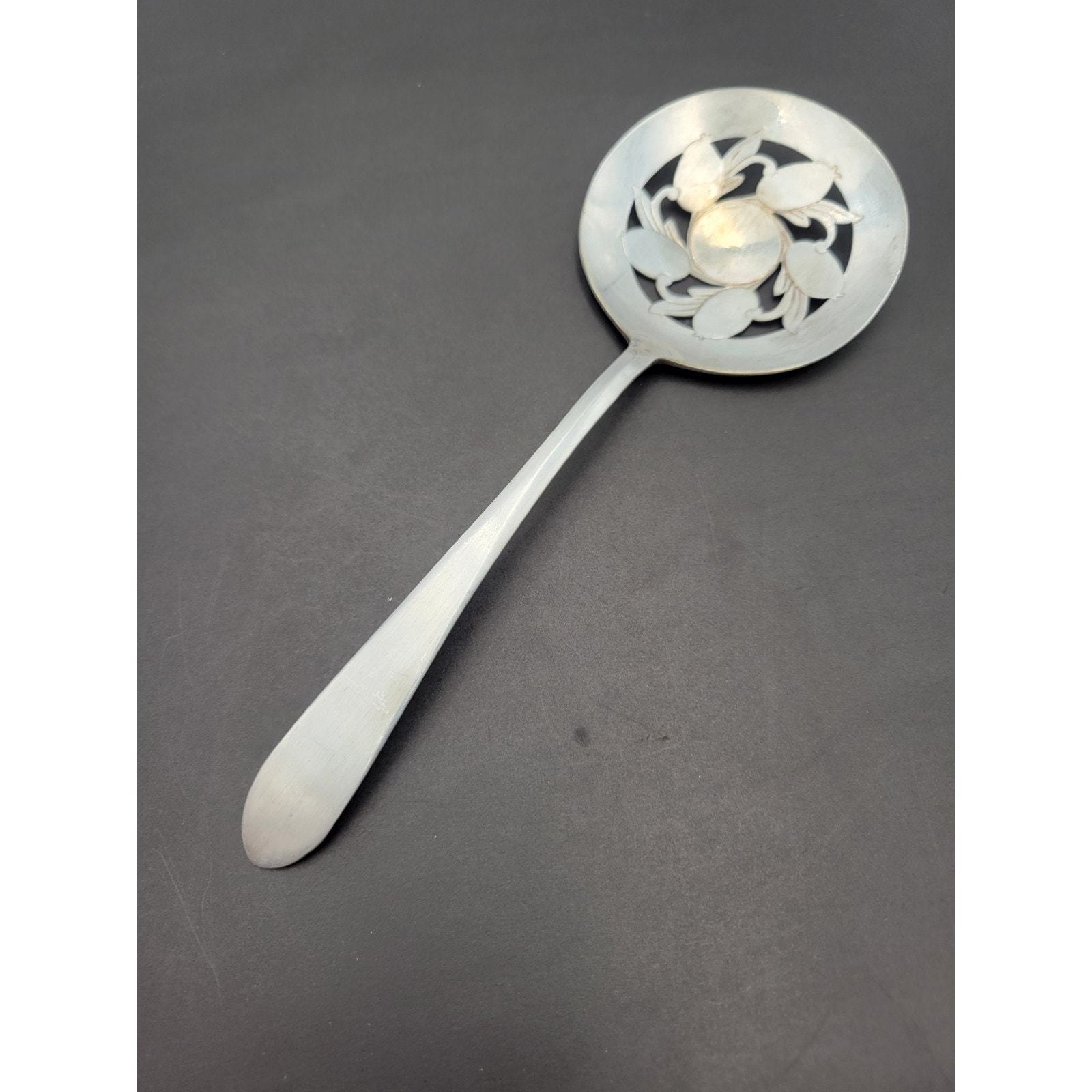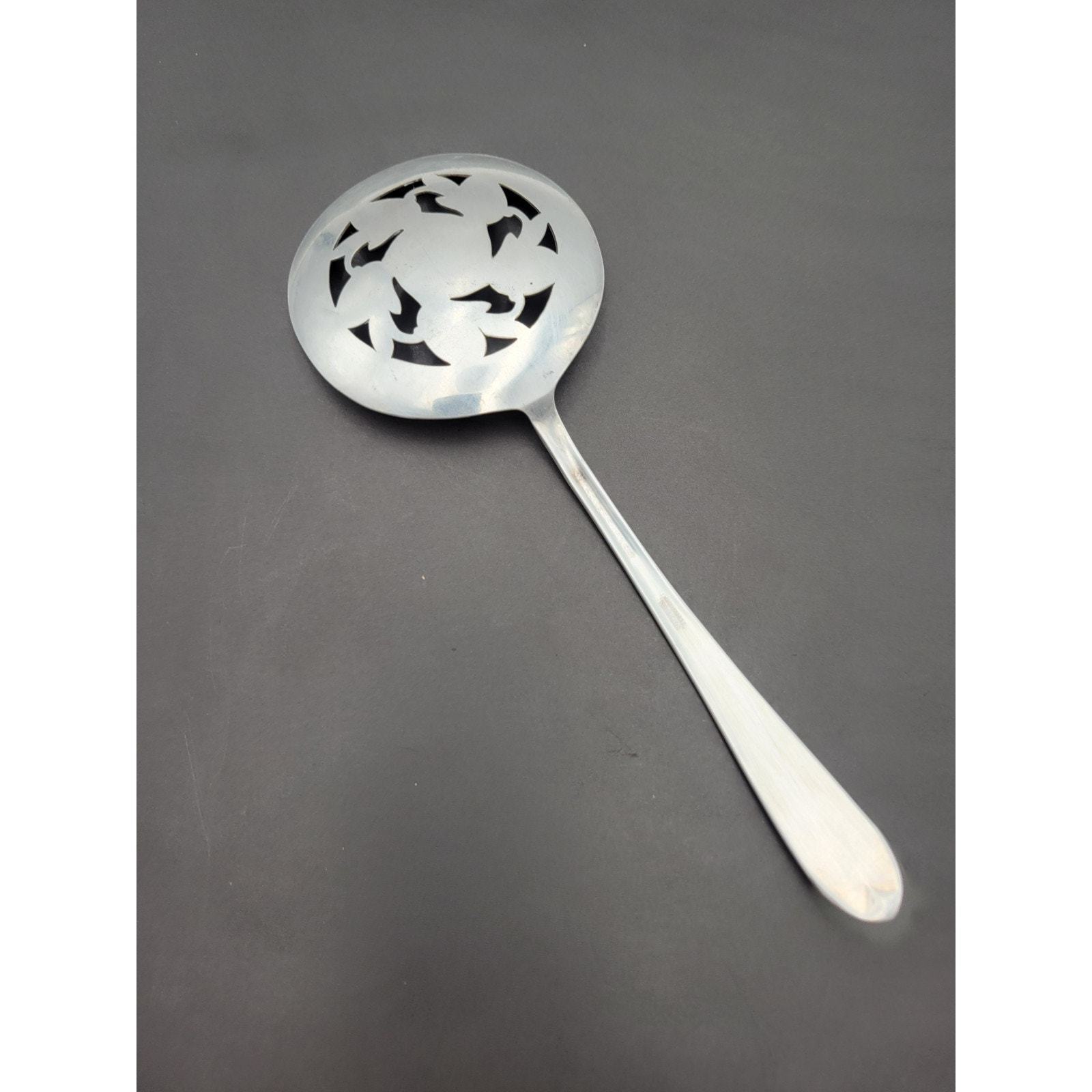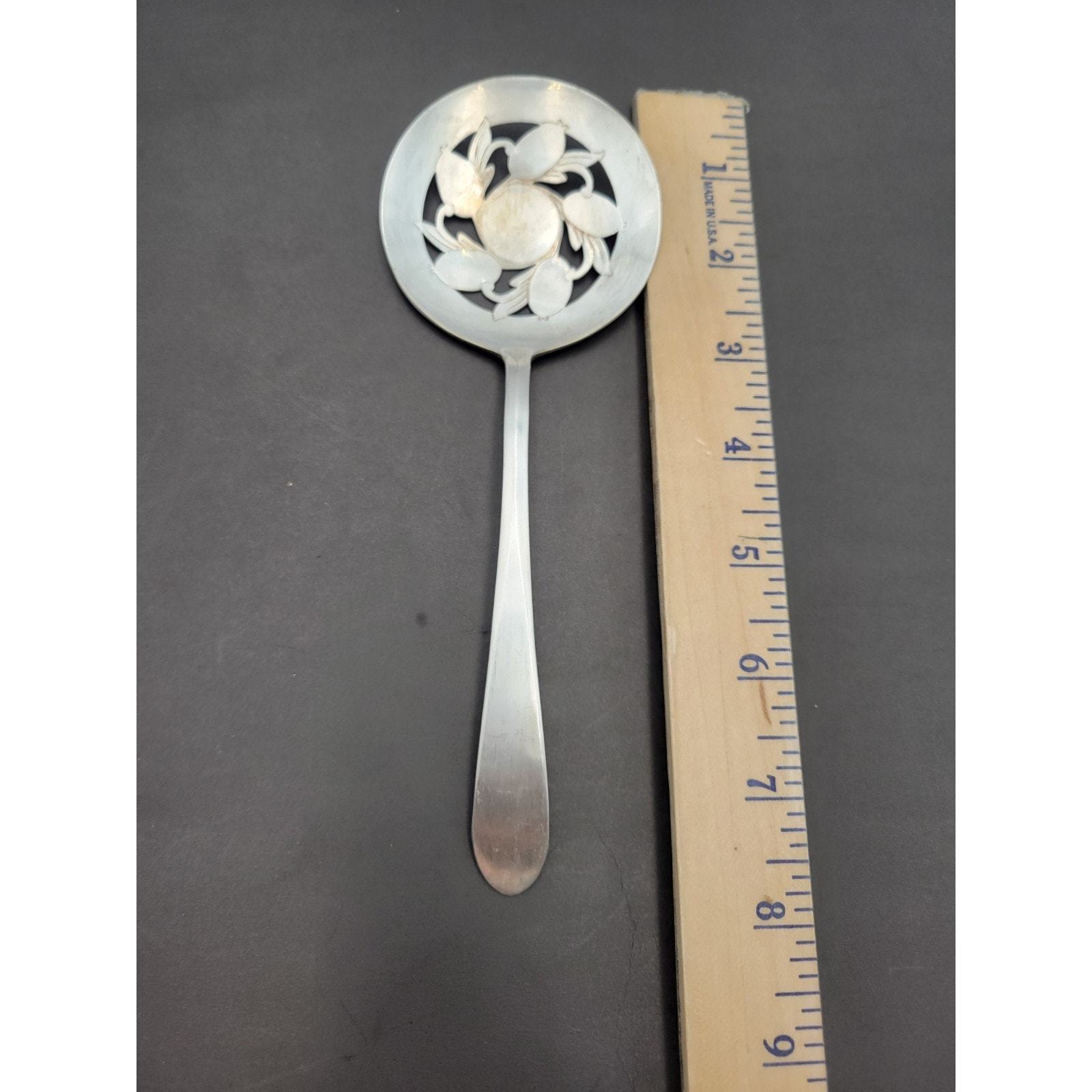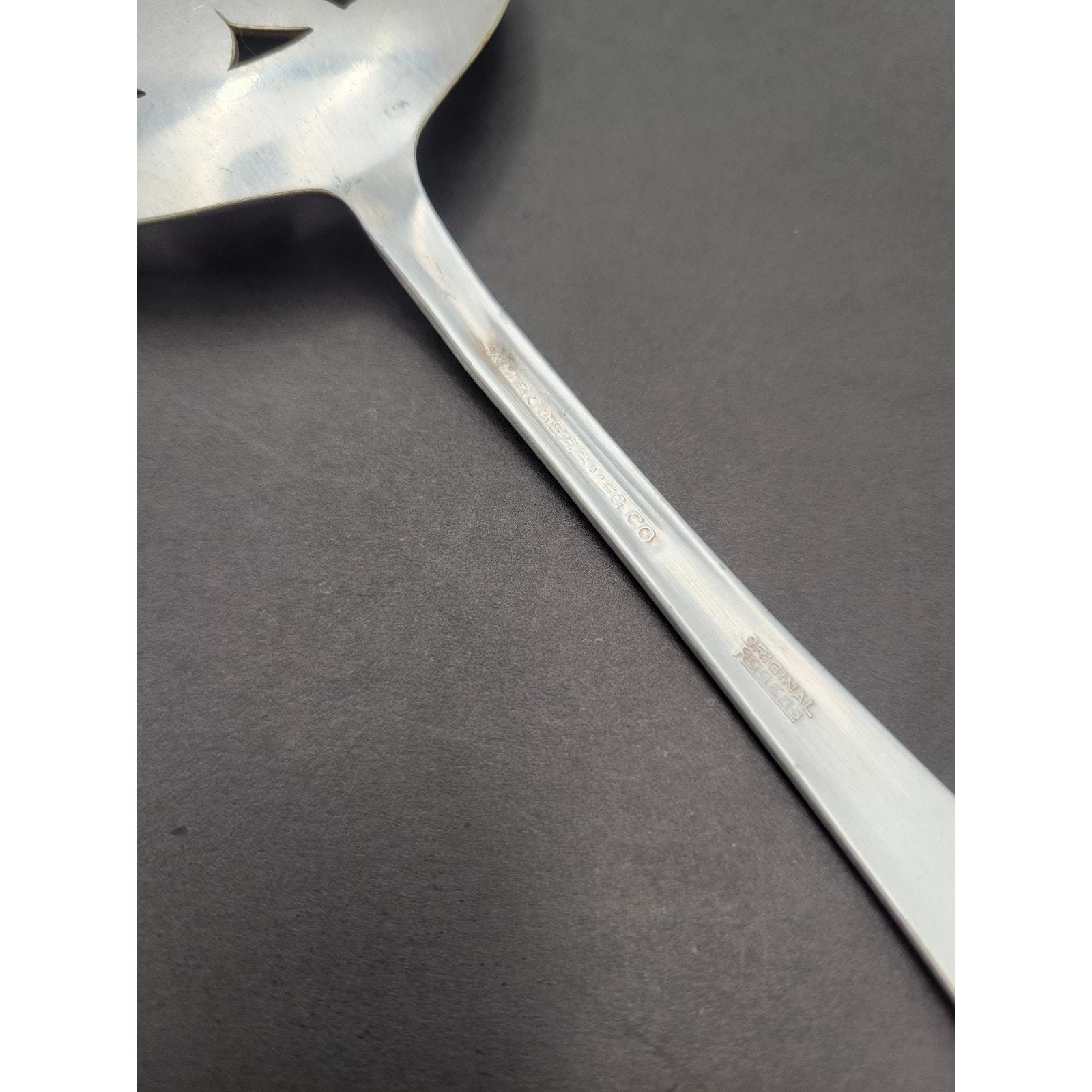 - Rogers International Silver Co. TS Round Slotted Serving Spoon Vtg