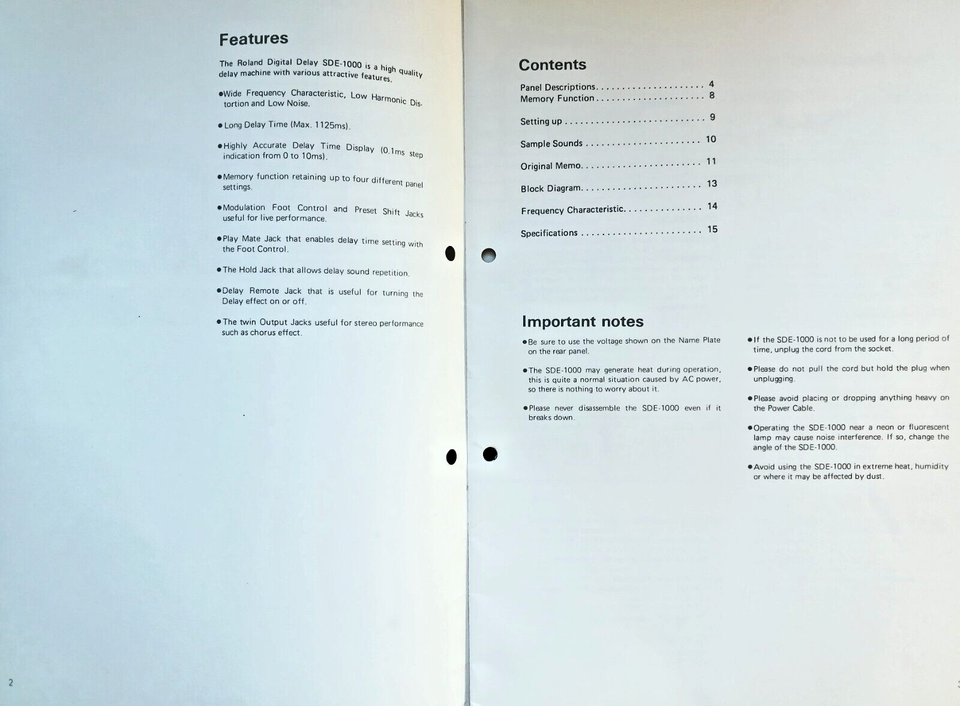 - Roland SDE-1000 Midi Rack Digital Delay Processor Original Owner's Manual Book.