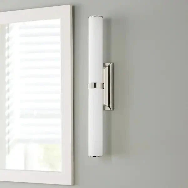 - Rolande 100-Watt Equivalent Polished Nickel LED Vanity Light Tube Etched Glass